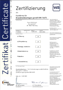 VdS Zertifizierung als Fachfirma für BMA DIN 14675