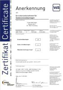 VdS Anerkennung als Errichterfirma für Brandmeldeanlagen